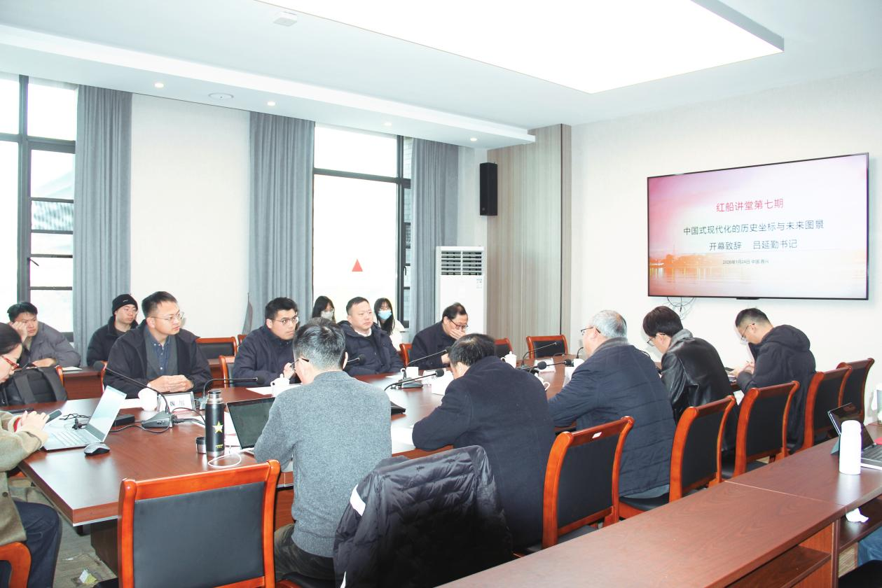 (中共党史党建学院)第七期红船讲堂暨青年教师首届红船青研坊在厚德楼350会议室顺利举办。本次活动以“世界变局与文明展望:中国式现代化的历史坐标与未来图景”为主题,汇聚复旦大学、上海交通大学、上海政法学院、湖州师范大学等多所高校专家学者,与我校师生齐聚一堂,跨学科研讨中国式现代化相关前沿议题。校原党委副书记吕延勤,学院副书记、副院长罗理章,学术副院长余玉湖等出席,本次活动由刘媛媛博士主持。