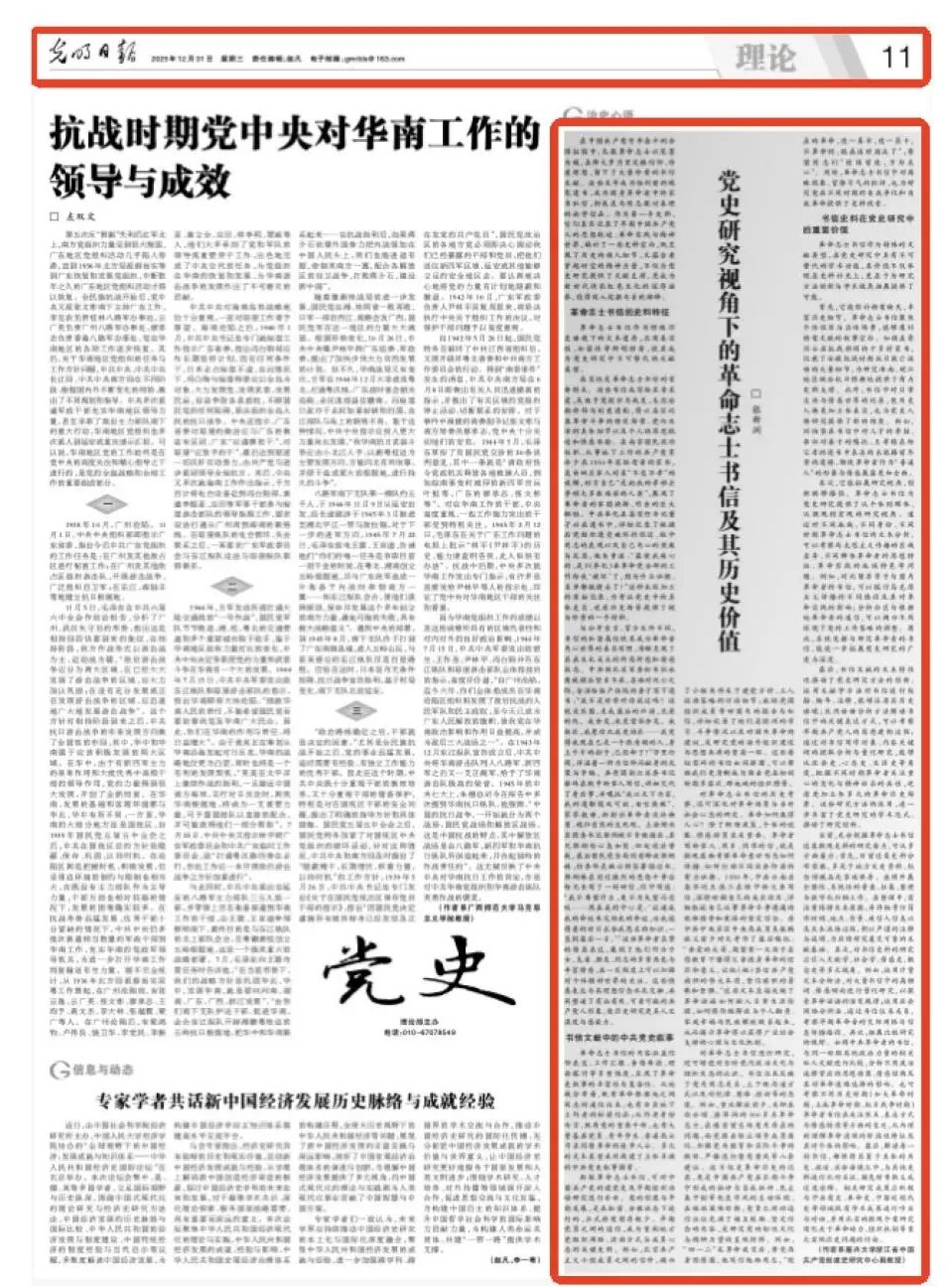 张新洲副教授撰写的理论文章《党史研究视角下的革命志士书信及其历史价值》,于2025年12月31日在《光明日报》理论版发表。这篇近4000字的学术力作,是澳门六合彩